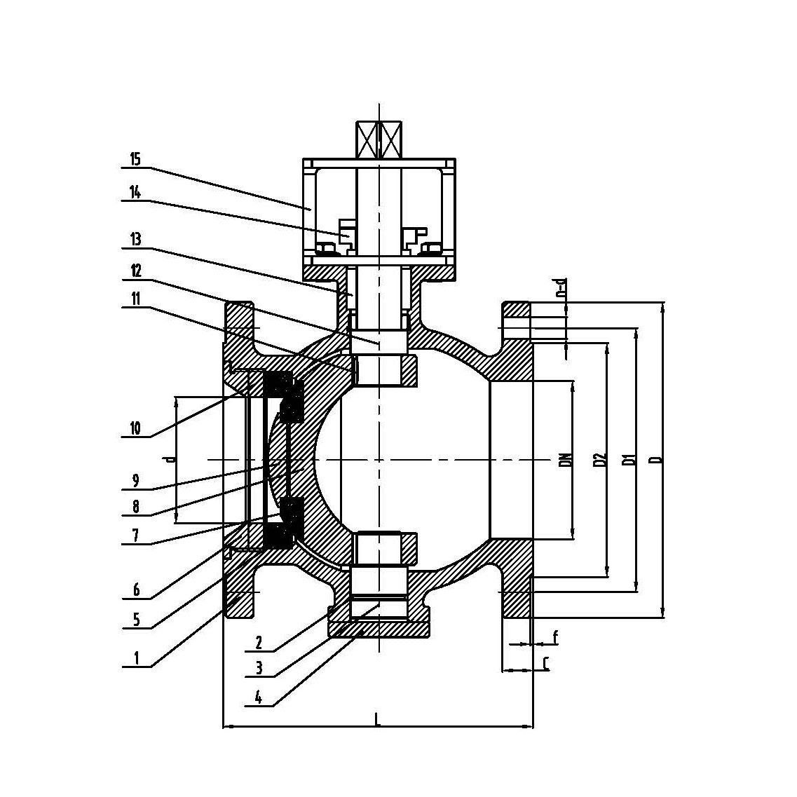 | DN | L | d | D | D1 | D2 | f | C | n-d |