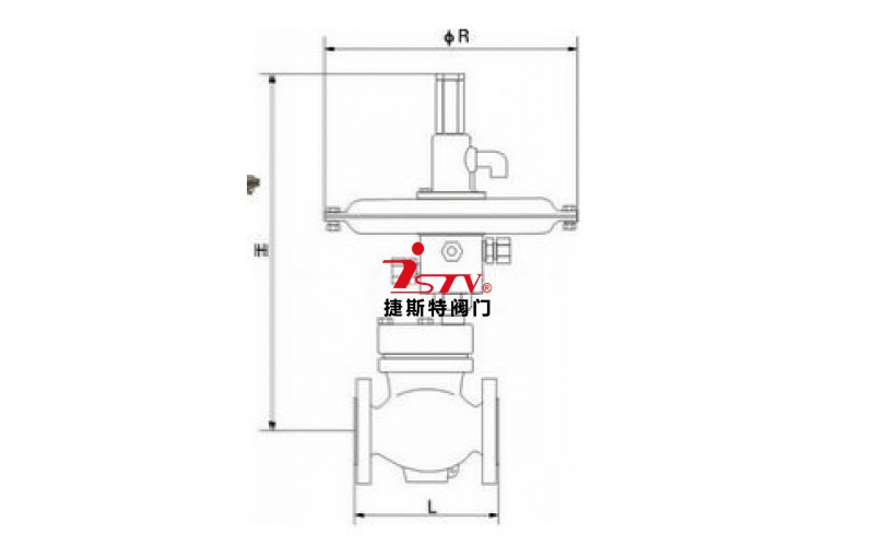 該閥采用大膜片執(zhí)行機(jī)構(gòu)輸出力大穩(wěn)定,對壓力流量微小變化極其敏感,控制精度很高,閥芯采用單座流開(高進(jìn)低出)設(shè)計(jì),在閥蓋處(和閥體連接處)安裝有平衡膜片(起到閥前壓力平衡,消除不平衡力)閥后壓力經(jīng)取壓管進(jìn)入薄膜執(zhí)行機(jī)構(gòu),同薄膜執(zhí)行機(jī)構(gòu)調(diào)節(jié)彈簧相比較,壓力達(dá)不到設(shè)定值(調(diào)節(jié)壓縮執(zhí)行機(jī)構(gòu)彈簧)閥后壓力則變大,反之則變小。